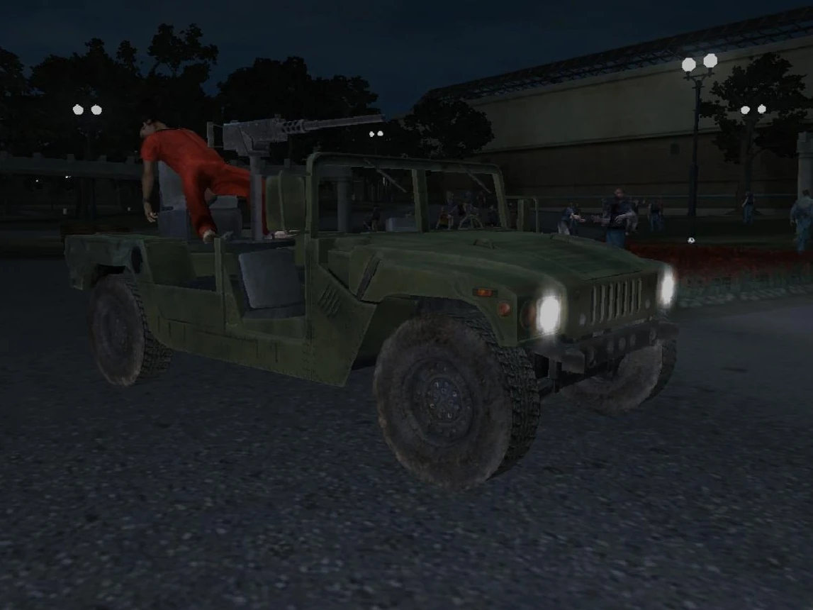 Este coche es un "HUV", "jeep" o un humvee como se lo conoce. Es uno de los vehículos que pueden usarse a lo largo de Dead Rising, en caso de que el jugador decida realizar la exclusiva correspondiente: Prisioneros. Este es una de las variantes conocidas de vehículos con motor de cuatro ruedas con posibilidad de ser usados en Leisure Park, siendo los otros el camión de reparto, el convertible rojo y el sedán blanco.