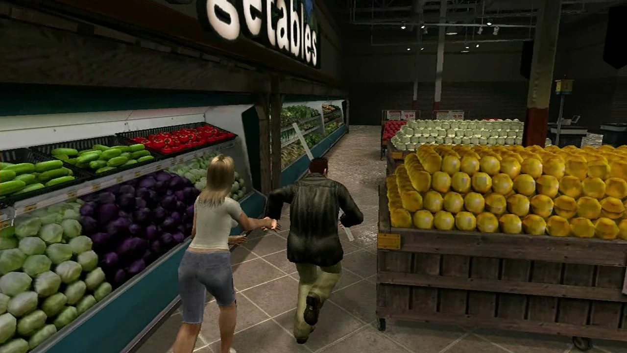 La chica del supermercado era un personaje deDead Rising , ella aparece en el trailer del videojuego siendo llevada de las manos por Frank y en pocos segundos, se ve como esta se tropieza. Ella llevaba una camisa blanca y shorts azules.