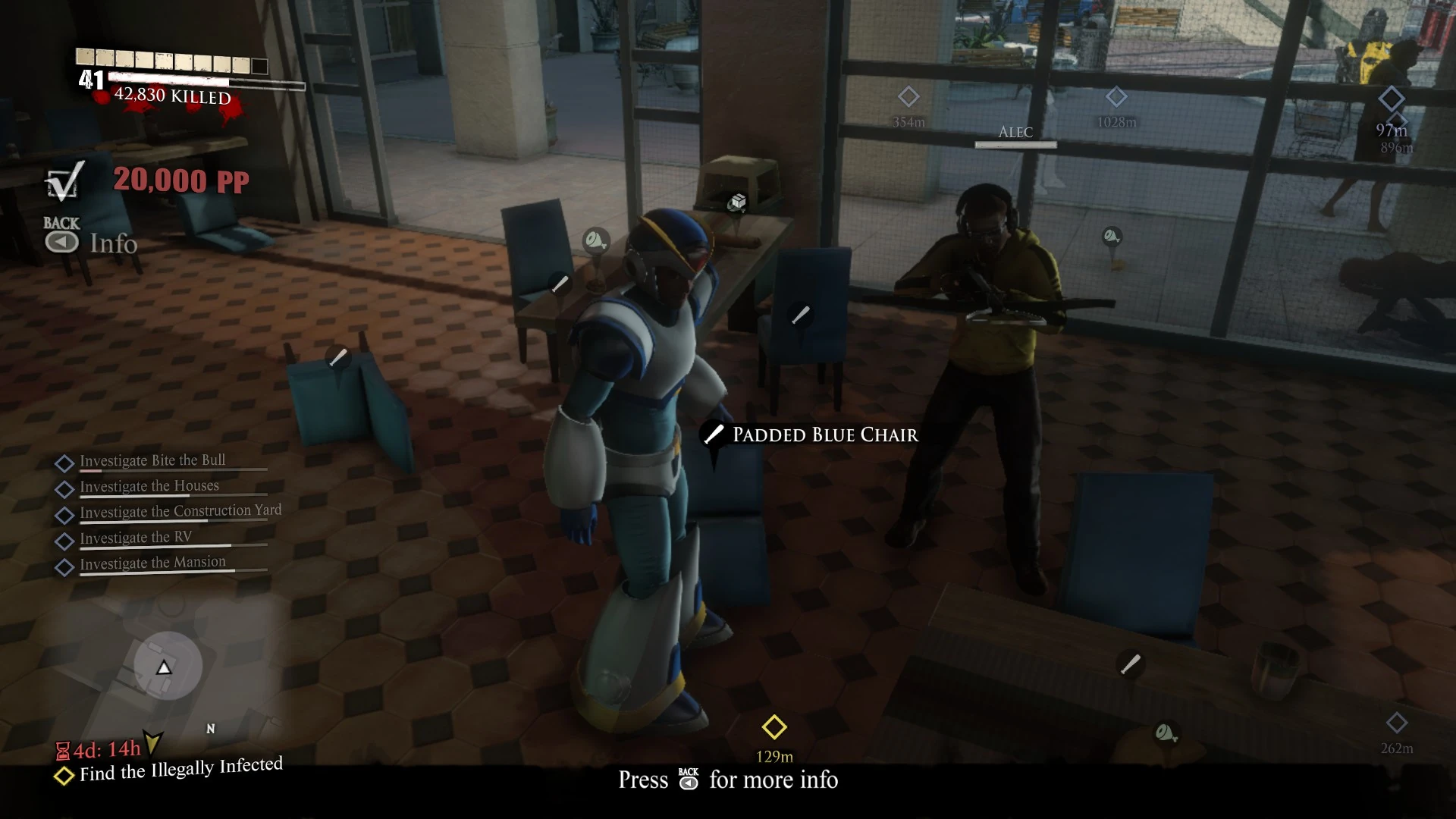 He is hiding inside of the Rojo Diablo Mexican Restaurant in Sunset Hills during Chapter 3. Clearing the zombies around him will award you 7,500 PP. He will retreat to a safer area once he has been saved.