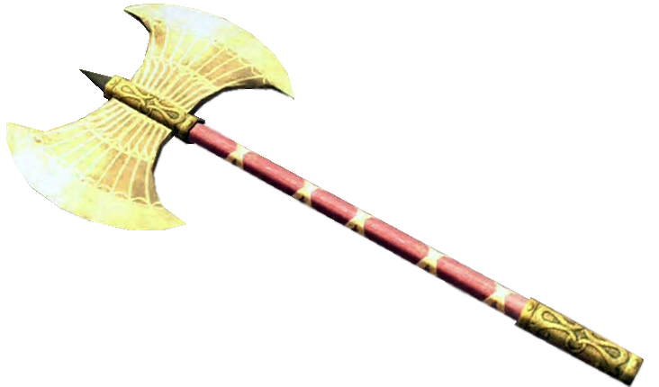 It is a giant metal axe once used as a weapon in historical times, but now preserved as an antique. It is one of the strongest weapons in the game.