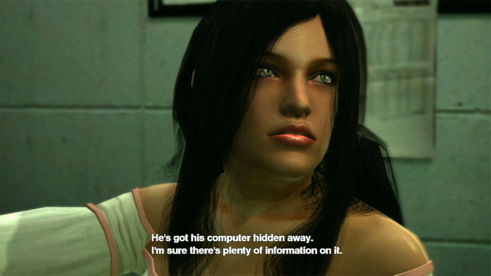 Frank confronts Isabela and questions her about her brother's plans, and she suggests they check out his computer in their hideout. She offers to escort him there.
