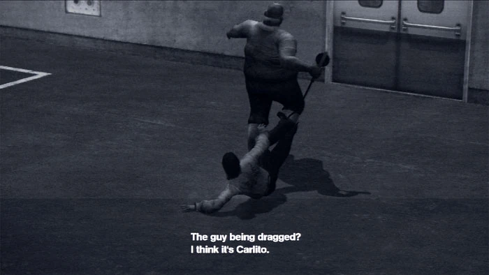 Jessie's discovery is revealed to be footage from the maintenance tunnels, which shows Carlito being dragged into the meat processing area by a massive man with a meat cleaver.