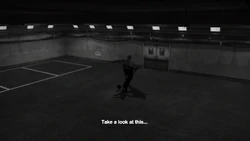 ![]() Frank: You could be right. Where is this? Jessie: The basement of the North Plaza... right in front of the butcher shop.[1] | |