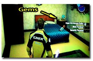 | Gems | Living Quarters | The gems are found in the Living Quarters. On the top floor of rooms, find the room labeled "X1." The gems will be inside that room on a nightstand beside the bed. | |