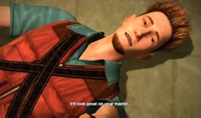 If Frank gets to Kent after 12:05, there will be an alternate cutscene, where Kent brags about himself having managed to get a photograph of Tad being zombified. Kent points a gun at Frank's head, telling him he is going to tie him up "nice and tight". Kent ties Frank up, putting a collar around his neck with a chain attached from high above. Kent will remove Frank's items and clothing, which Frank loses permanently. Frank will then be Kent's photo slave and have to fight Kent barehanded.