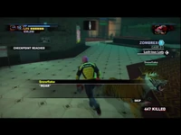 It turns out there is a crowd of zombies closing in on a woman. The woman is armed with a handgun, but quickly runs out of ammo. She then throws her gun at a zombie and flails her arm at the helicopter to signal for help. Unfortunately, three zombies grab ahold of her, making her lose her balance and fall; her body (and the zombies) splatters as it hits the pavement below.