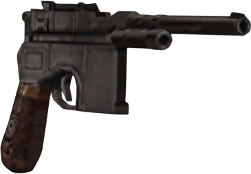 - The real name of the gun is the Mauser C96. It is often nicknamed the "Broomhandle" due to the shape of its grip. The 9mm variant is commonly referred to as the Red 9 because of the red "9" carved into the grip, used to distinguish it from other calibers.