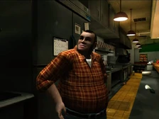 Frank West finds a boarded up sandwich shop in Paradise Plaza around noon on the second day. A hungry survivor, Ronald Shiner, had barricaded himself in the store, and is desperately looking for food.