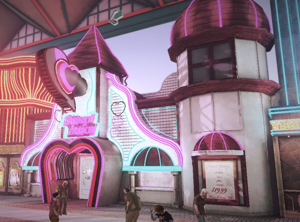 Swept Away is a wedding chapel located in the Silver Strip in Dead Rising 2 and Dead Rising 2: Off the Record. Before the zombie outbreak, it was a location for quickie marriages, available for only $19.99. Swept Away is initially locked and cannot be accessed until the mission Here Comes the Groom.