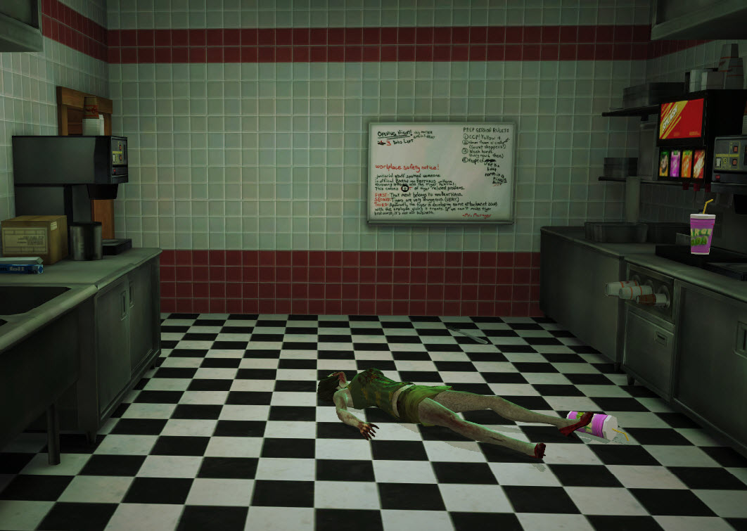 | Maintenance room | Location | Weapon(s) | Creates | Food Magazine(s) | Clothing |
