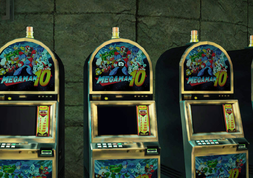 On one of the south-facing Mega Man slot machines surrounding the Money to Burn minigame | 80 | ||||