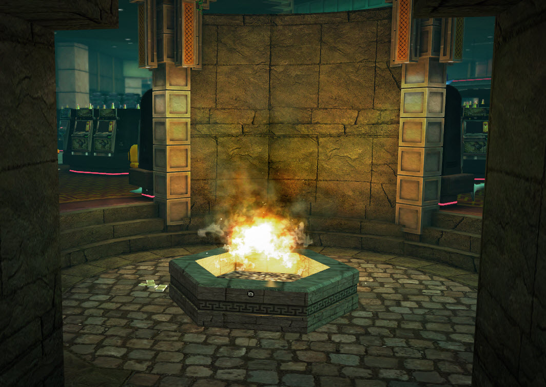 - There is a fireplace where the player can burn money. The more money is burned, the more PP the player gets.