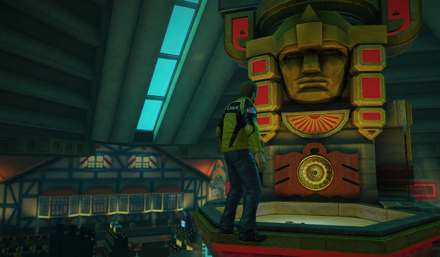 Above the Lucky Marble slot machine and statue, just below the statue head | 77 | ||||